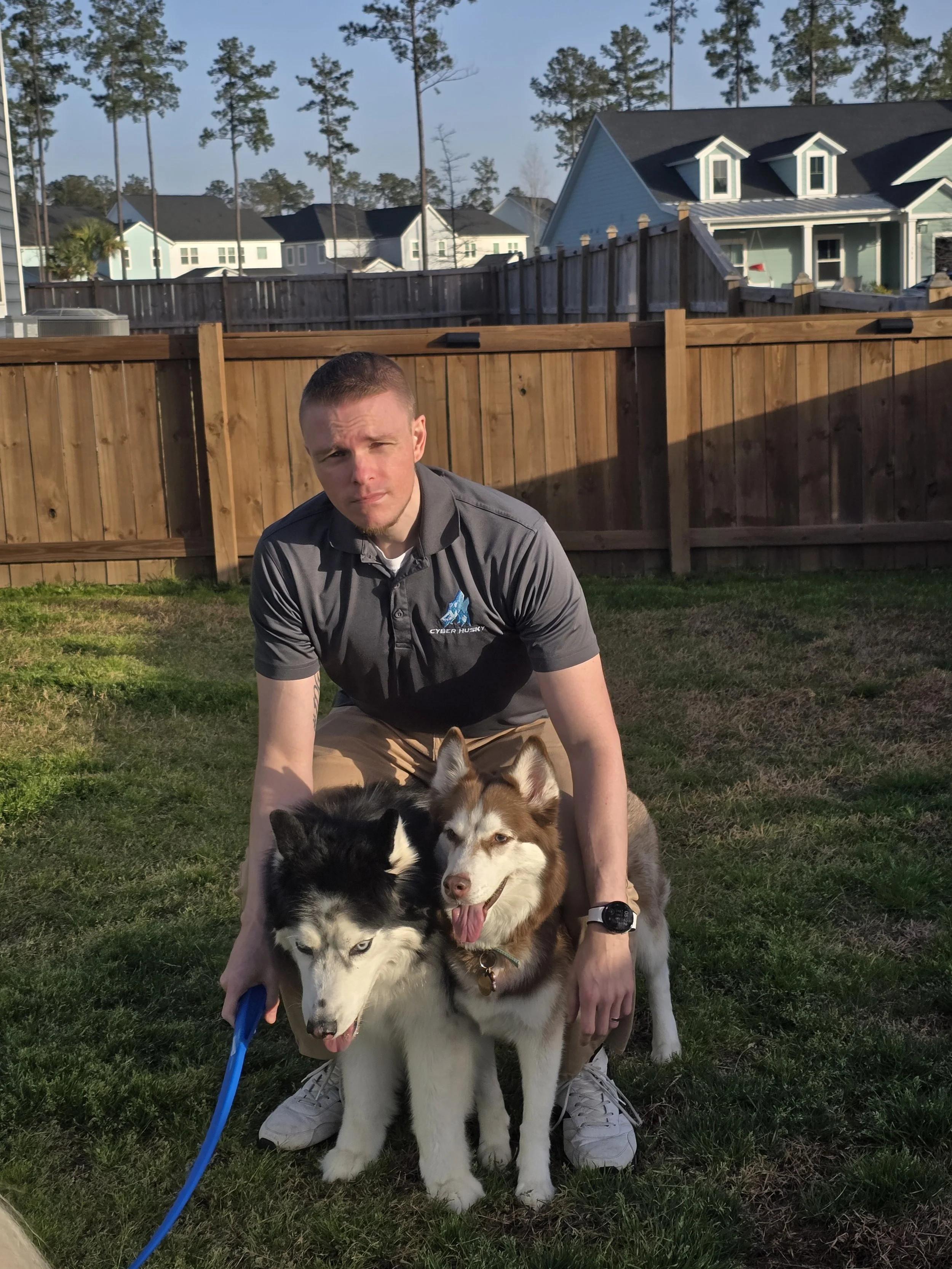 Taylor Erickson keeps Cyber Husky running with her dedication to the business and love of her team. Whether she’s refining processes, onboarding new clients, or coaching staff, Taylor’s “care first” mindset ensures every stakeholder feels supported and gets what they need - an approach honed outside the office while wrangling her three wild Siberian huskies. That same dedication to nurturing and protecting her pack feeds Taylor’s commitment to building a company where her team thrives & customers receive attentive, white-glove service at every turn. Also in the picture is Mikhail, 1 of the 3 original Cyber Huskies. Taylor won't say it out loud, but he is her favorite!